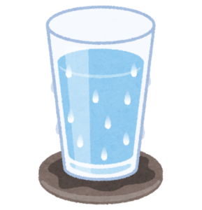 冷たい飲み物のグラスの外側に水滴がつくのは表面結露です。